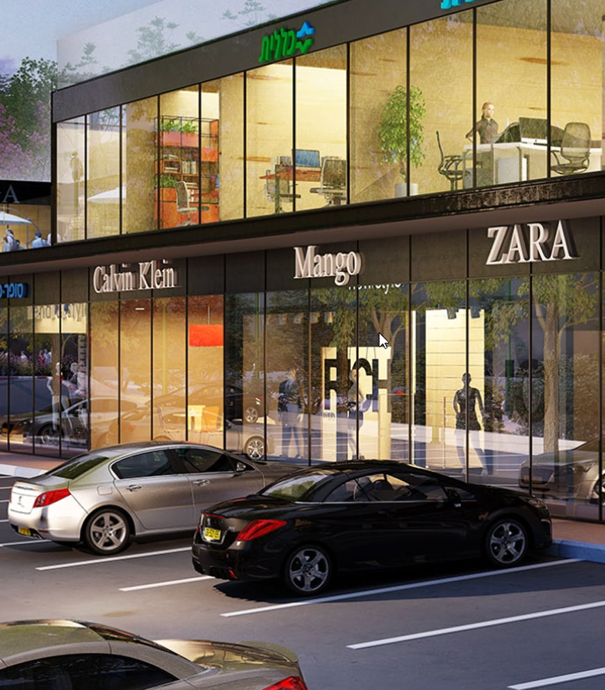 בפרויקט יוקם מרכז קניות ופנאי שיכלול את כל השירותים שאדם צריך בחיי
