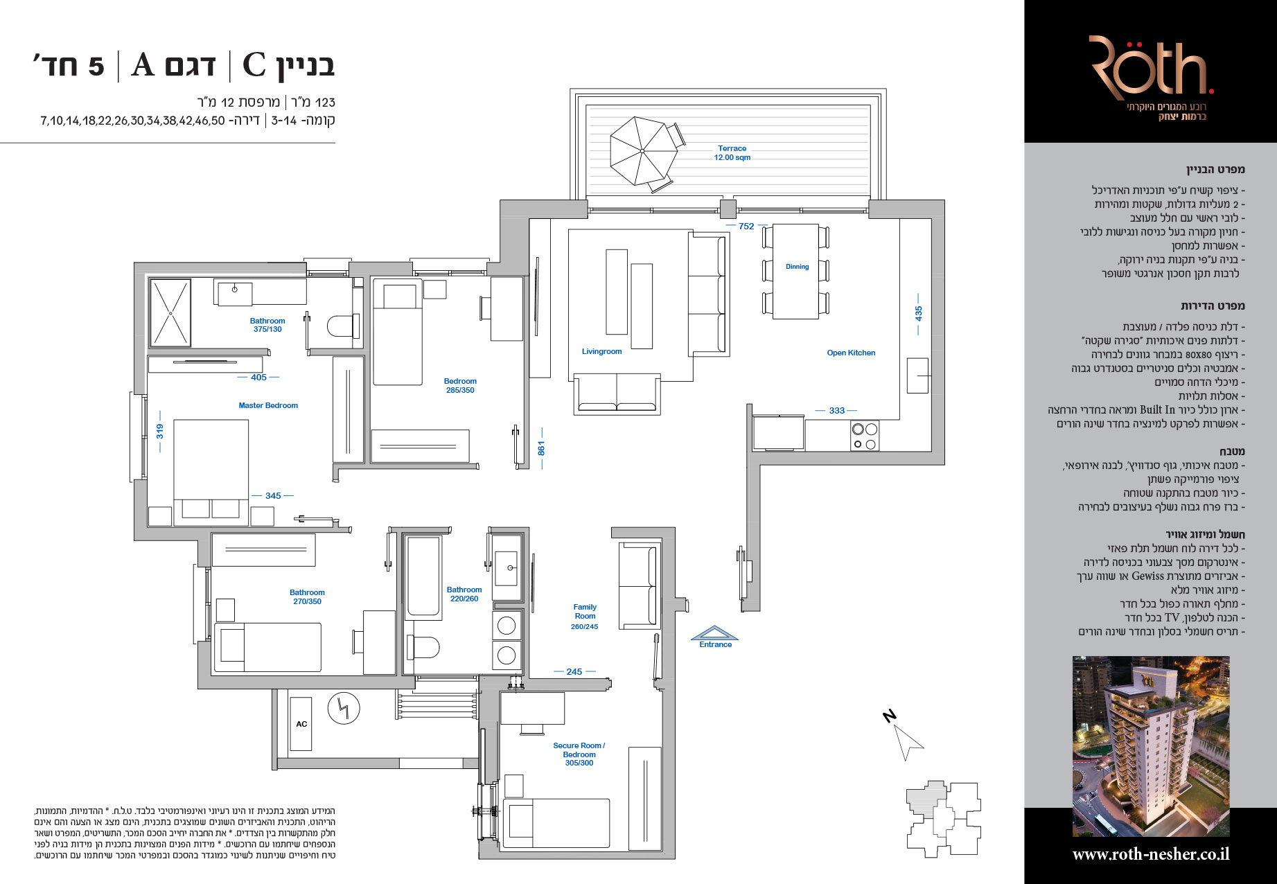 5 חד' 123 מ"ר + מרפסת 12 מ"ר