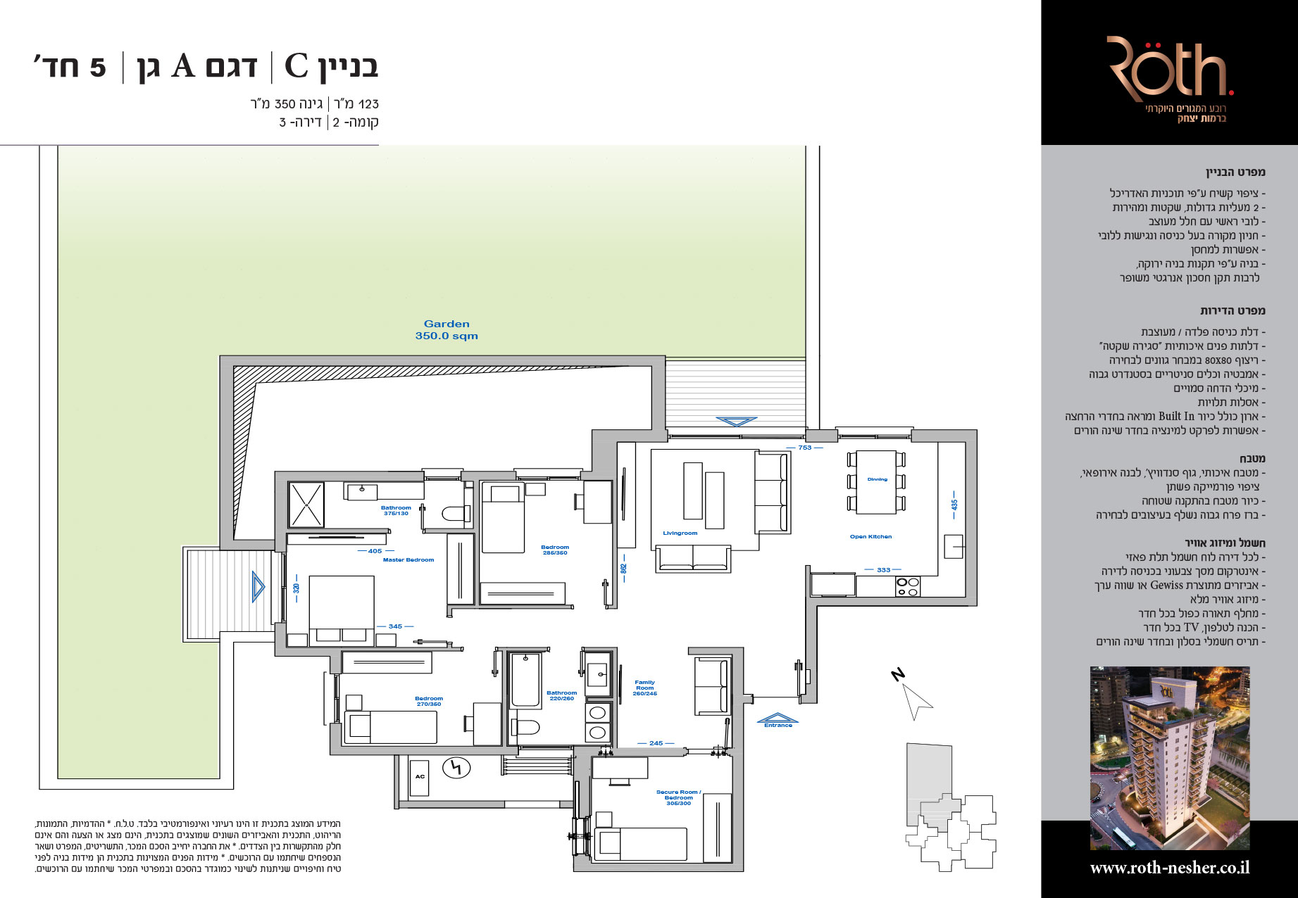 5 חד' 123 מ"ר + גינה 350 מ"ר