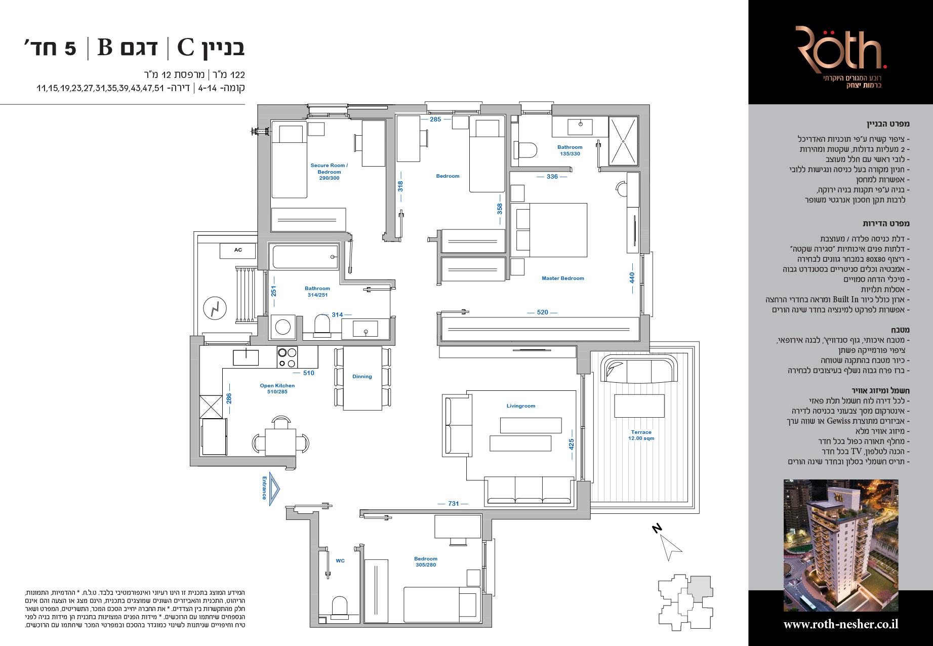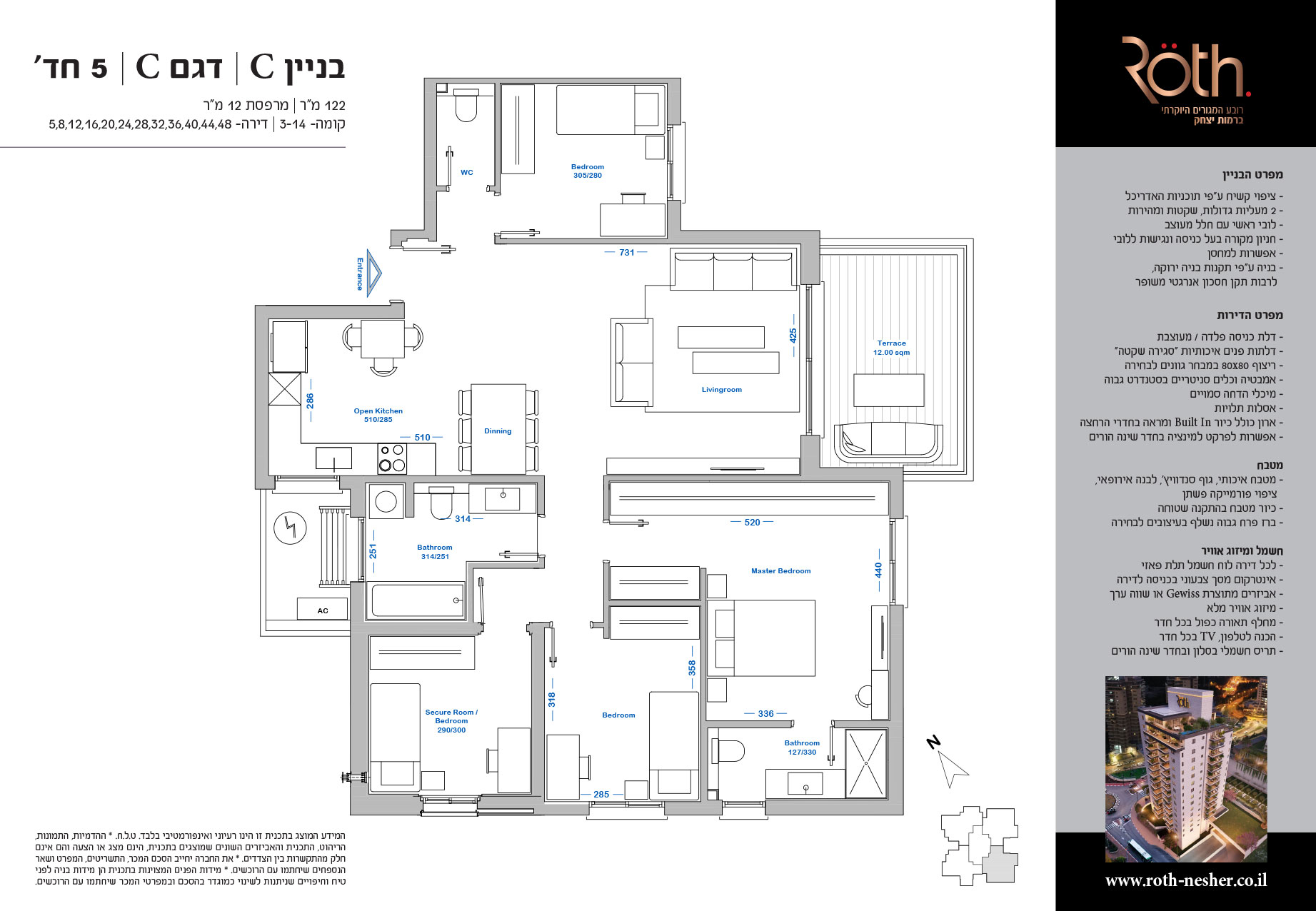 5 חד' 122 מ"ר + מרפסת 12 מ"ר