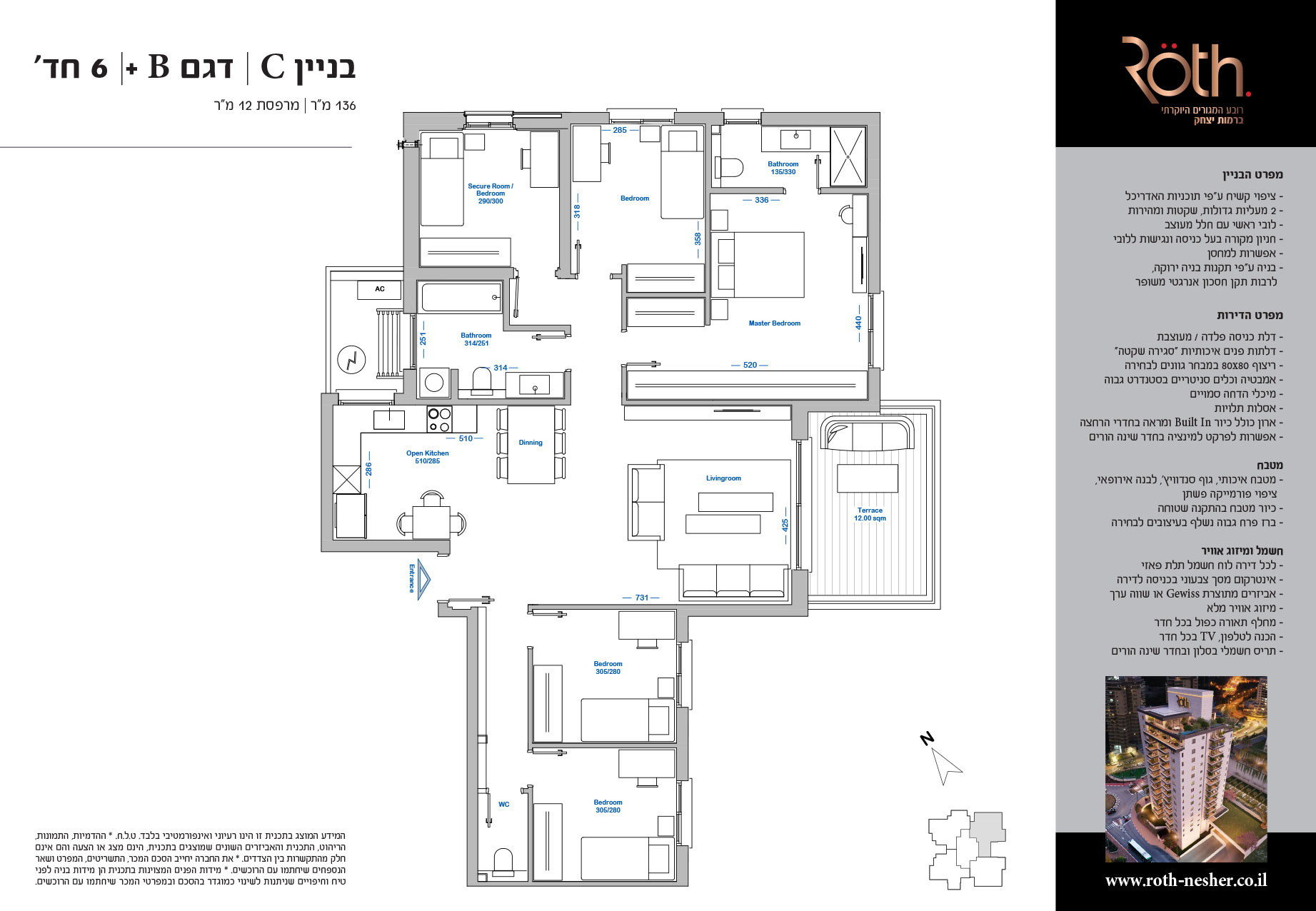 6 חד' 136 מ"ר + מרפסת 12 מ"ר