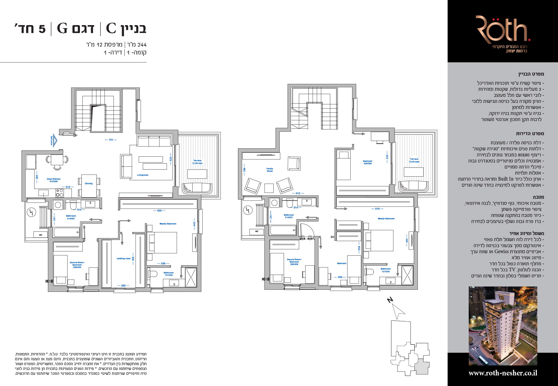 5 חד׳ 244 מ"ר + מרפסת 12 מ"ר
