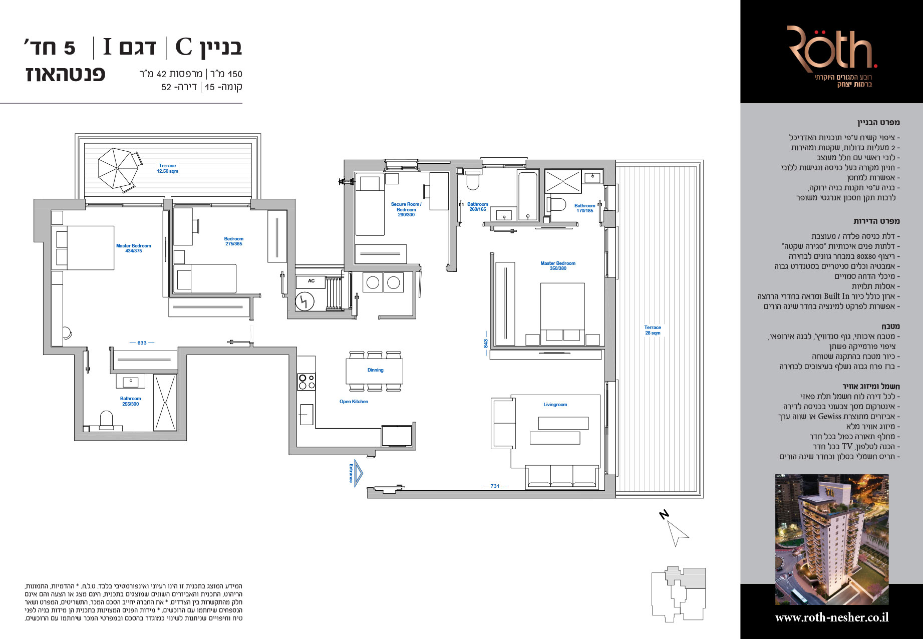 5 חד' 150 מ"ר + מרפסות 42 מ"ר