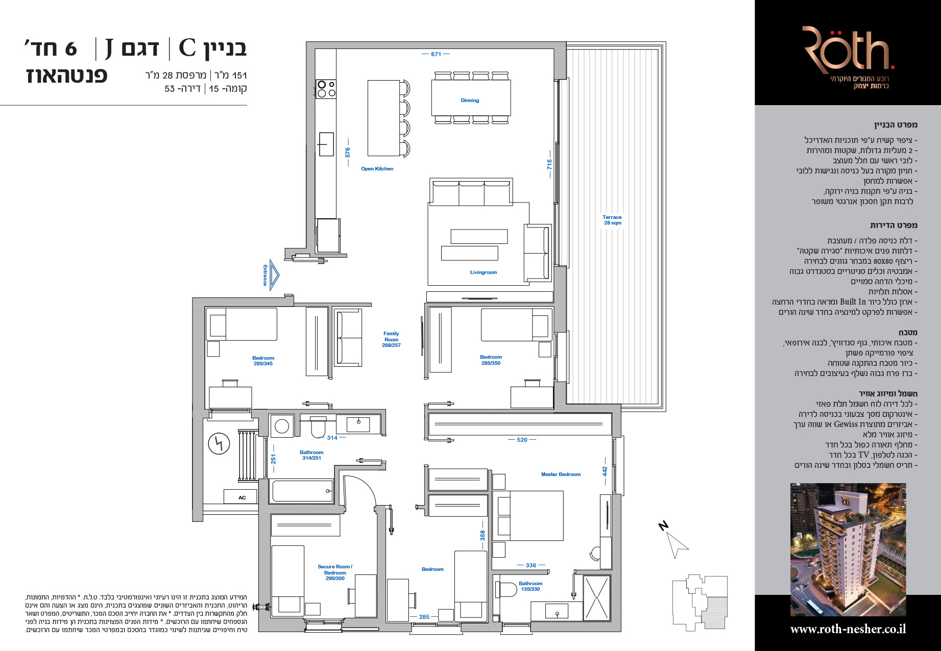 6 חד' 151 מ"ר + מרפסת 28 מ"ר