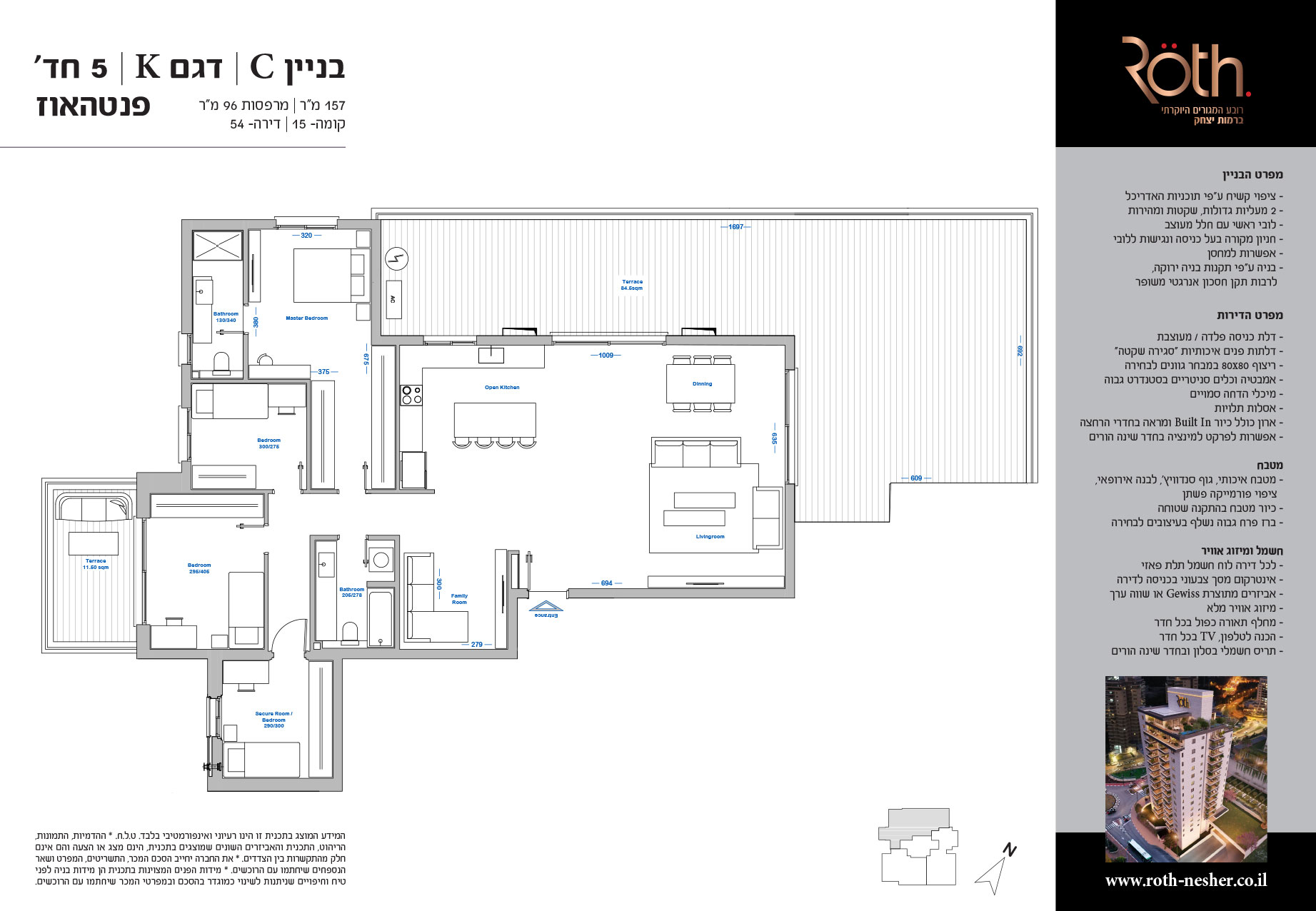 5 חד' 157 מ"ר + מרפסות 96 מ"ר
