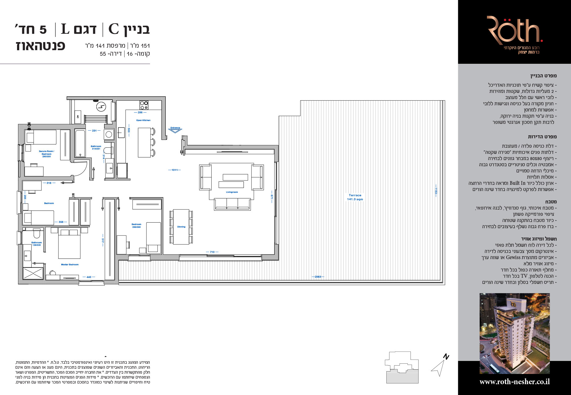5 חד' 151 מ"ר + מרפסת 141 מ"ר