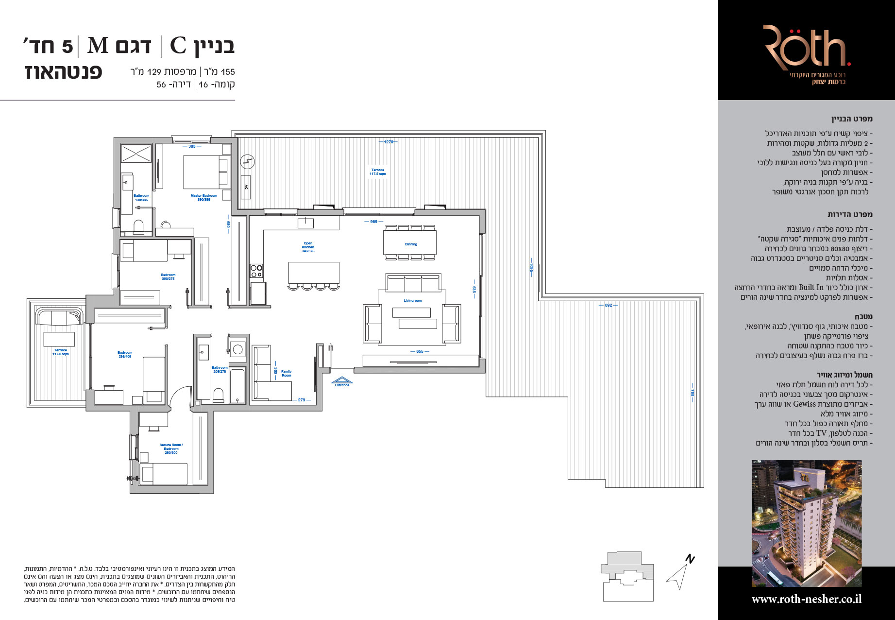 5 חד' 155 מ"ר + מרפסות 129 מ"ר